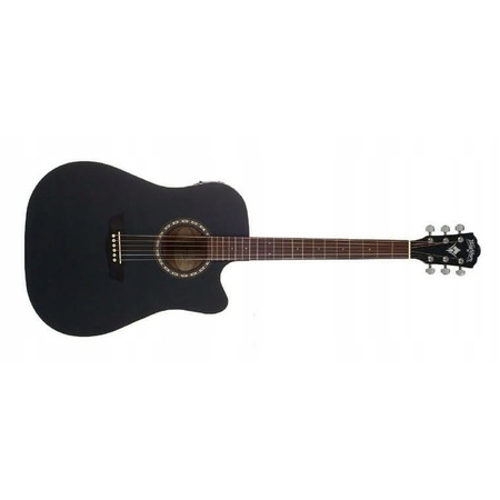 Sześciostrunowa typu Dreadnought z podcięciem (Cutaway). Rozmiar 4/4. Płyta wierzchnia, boki i tył wykonane z drewna lipowego. Gryf mahoniowy. Podstrunnica i mostek: ciemny orzech (Dark Walnut). Klucze chromowane typu Die-cast. Wykończenie: wysyłki połysk. Kolor: Czarny.