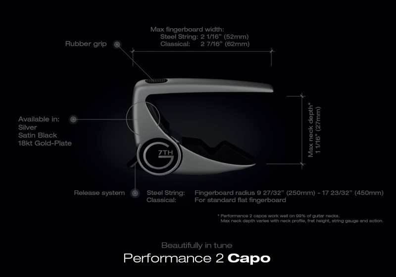 - Jeden z najbardziej innowacyjnych i dopracowanych kapodastrów na świecie - Performance 2 brytyjskiej firmy G7th. Zaprojektowano go w taki sposób, by pewnie trzymał struny, ale jednocześnie ich nie niszczył oraz nie ściskał gryfu z niepotrzebnie za dużą si