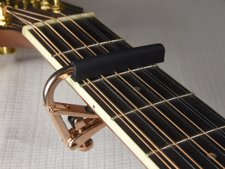 Kapodaster dedykowany do 12-strunowych gitar akustycznych w wykończeniu w kolorze Rose Gold. Idealnie podkreśla wysokiej klasy instrumenty oraz świetnie dociska struny.