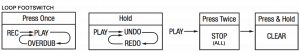 Looper i kontrola perkusji są oddzielone, lewy przełącznik nożny (LOOP) kontroluje nagrywanie i nakładanie, a start / stop odtwarza nagrane ścieżki pętli. Służy również jako tap tempo (Smart TAP), dzięki któremu możesz ustawić tempo dla perkusji, nabijając je przed nagraniem utworu.