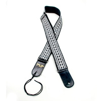 Pasek do gitary żakardowy ze skórzanymi zaczepami czarno-biały
